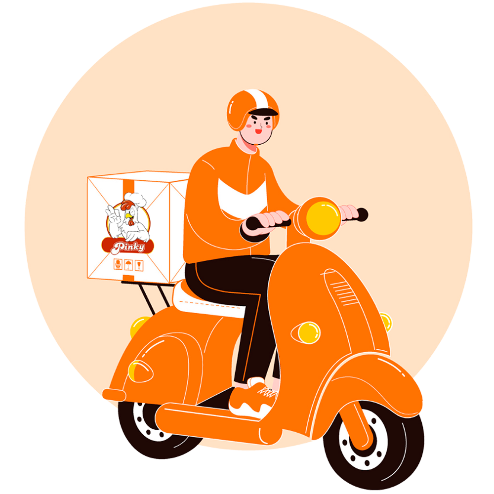 4 piezas de delicioso pollo frito Pinky crujiente por fuera y jugoso por dentro + 2 de patatas + 2 refrescos + (500ml) 2 Food Pinky a elegir (hamburguesa de pollo o wrap)