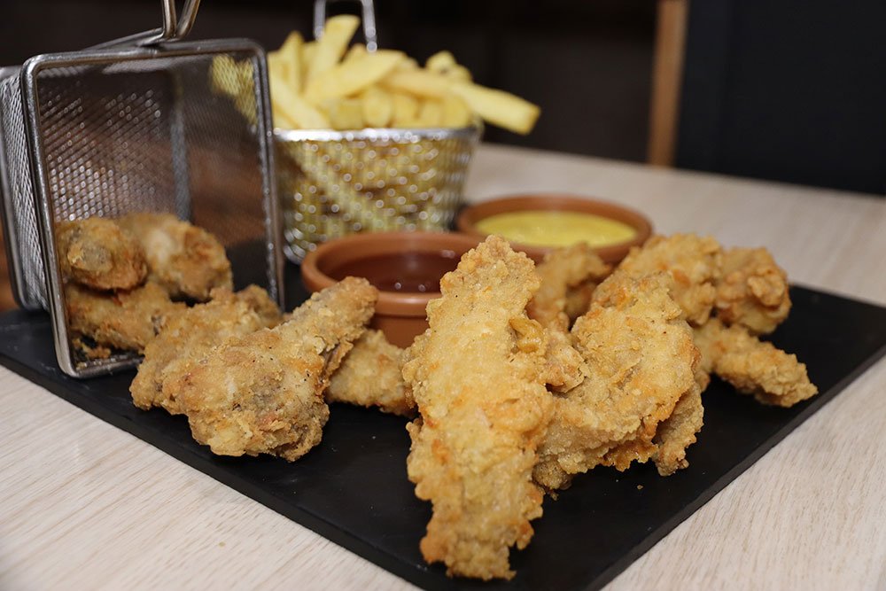 6 tiras de pollo + 6 alitas + patatas fritas + 2 salsas a elegir + un refresco(500ml).